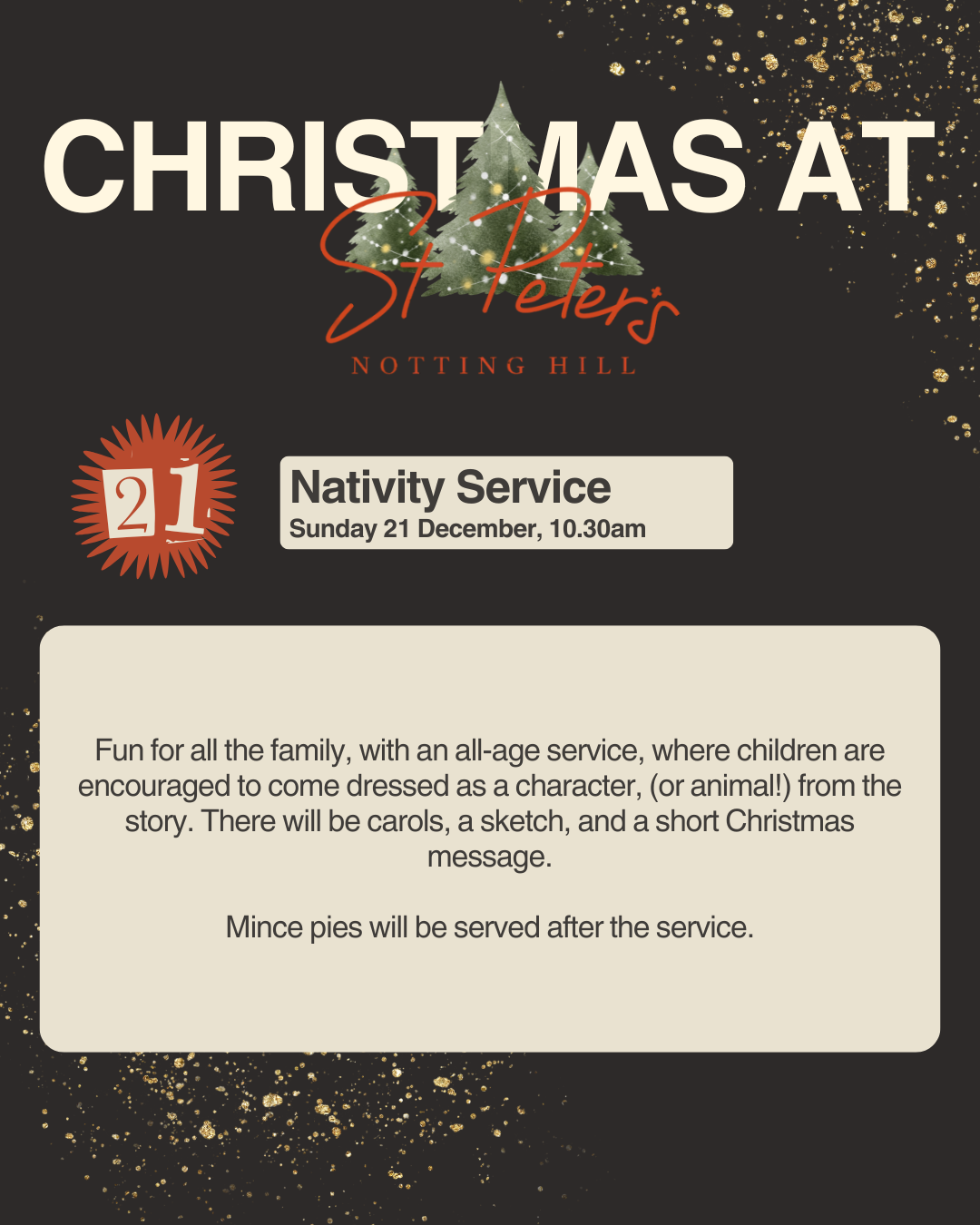 Fun for all the family, with an all-age service, where children are encouraged to come dressed as a character, (or animal!) from the story. There will be carols, a sketch, and a short Christmas message.